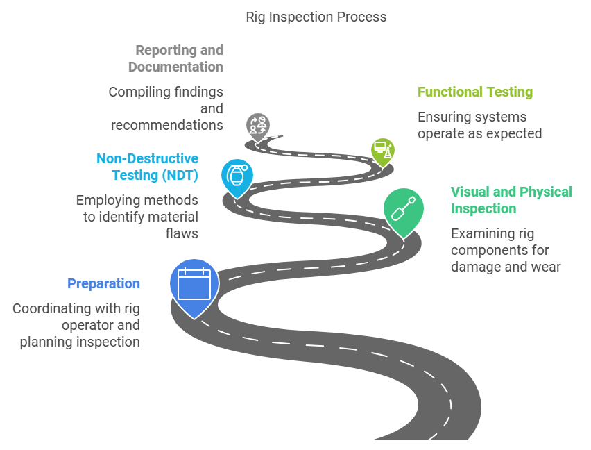 Inspectors assess the rig’s structural components, including the derrick, legs, jack-up systems, and subsea structures (for offshore rigs). Any signs of corrosion, cracking, or deformation are documented and prioritized for repair or maintenance.
